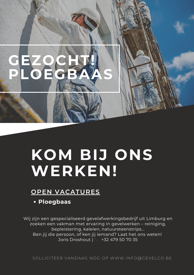 Interesse in deze uitdagende job met tal van leuke projecten? Reageer via e-mail naar Joris Droshout: info@gevelco.be